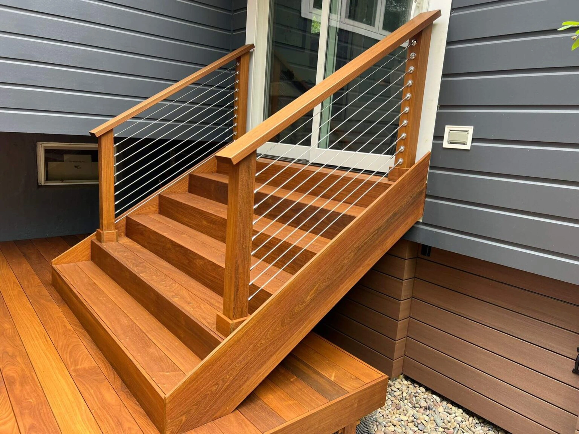 Cedar, redwood, pressure-treated lumber, and exotic hardwoods like Ipe, Tigerwood, and Cumaru.