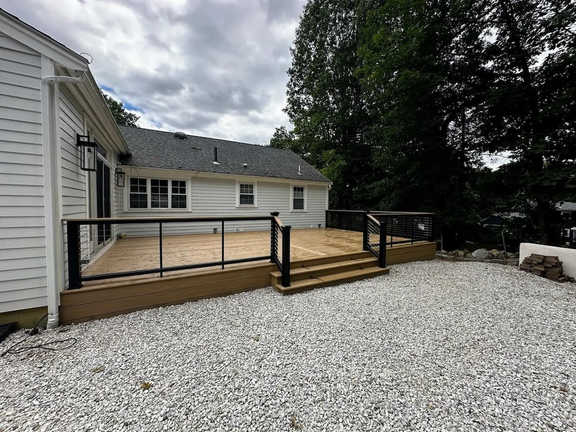 Enhance safety and style with code-compliant deck railing installation and deck handrail installation. We work with Trex, TimberTech, Deckorators, Fiberon, and other top railing brands. Whether you need new railing or help attaching deck railing to an existing structure, we handle it.