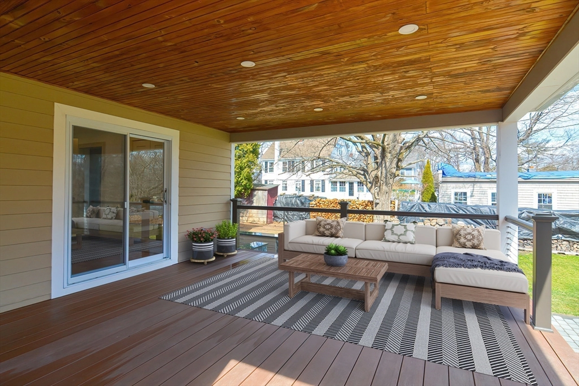 TimberTech and Azek PVC decking for durable, waterproof surfaces.
